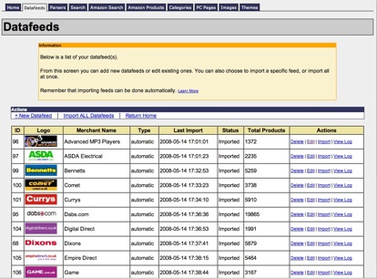 - Built-in datafeed parsers for affiliate networks such as Affiliate Window, BuyAt, Paid on Results, Share-A-Sale, TradeDoubler and WebGains - or easily create your own.